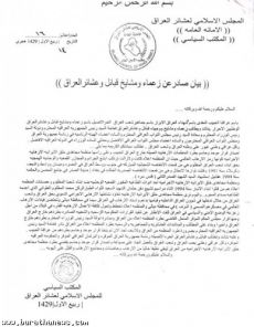 بيان المجلس الاسلامي لعشائر العراق حول وجود منظمة مجاهدي خلق الارهابية في العراق الموجه الى رئيس الجمهورية ورئيس الوزراء ورئيس ...