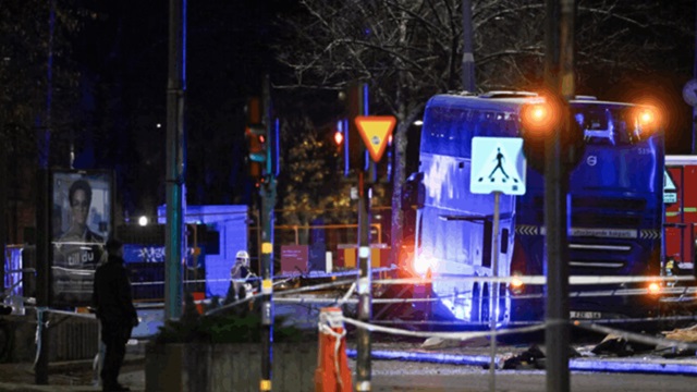 ضحايا بحادث اصطدام حافلة بمحطة انتظار وسط ستوكهولم