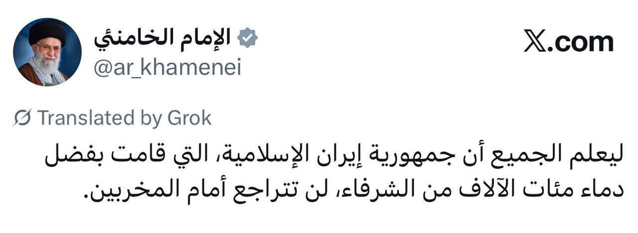 سماحة السيد القائد الخامنائي في تغريدة له : لن نتراجع أمام المخربين