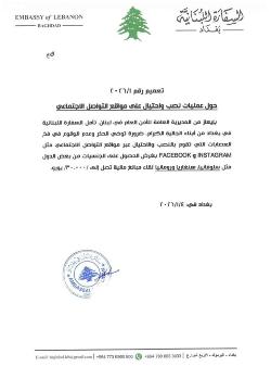 سفارة لبنان في بغداد تحذر من عمليات "نصب" تكلفتها 30 ألف يورو