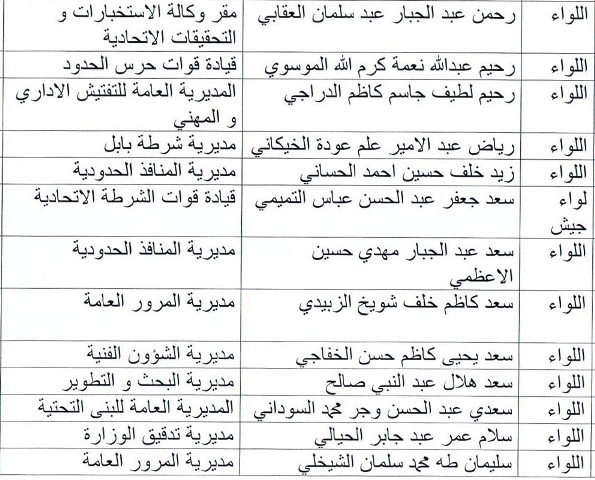 تنشر وكالة انباء براثا أسماء الضباط الـ 428 الذين أحالتهم وزارة الداخلية، اليوم الاثنين، الى الامرة.