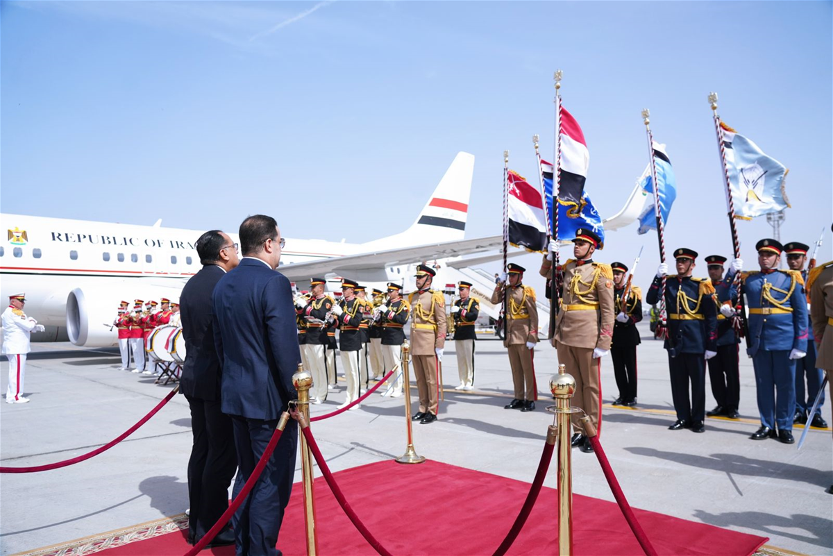 وأضاف انه "كان على رأس المستقبلين رئيس وزراء جمهورية مصر العربية مصطفى مدبولي، وشهدت المراسم عزف النشيد الوطني لكلا البلدين، واستعراض حرس الشرف".