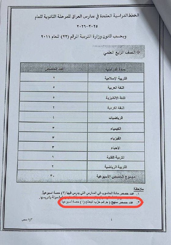 وزارة التربية : اضافة مادة "جرائم حزب البعث" ضمن حصص الصف الرابع العلمي والأدبي