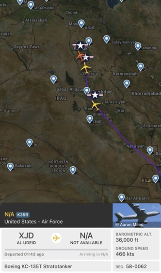 غادرت، اليوم السبت (4 تشرين الأول 2025)، عدد من حاملات الوقود الجوية قاعدة العديد في قطر ترافقها طائرات مقاتلة، واتجهت عبر الأجواء العراقية نحو إقليم كردستان وتركيا .