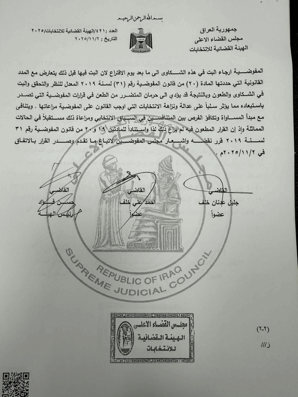 وكشفت الوثيقة الصادرة عن الهيئة القضائية للانتخابات تفاصيل قرار إعادة المرشح للسباق، موضحةً أن قرار العودة جاء لكون مسألة التدقيق في صحة الوثائق المُقدّمة ومفاتحة الجهات المختصة "قد تطول بسبب طبيعة التحقيق"، وأن هذه الإجراءات تتعارض مع قرب موعد الاقتراع.