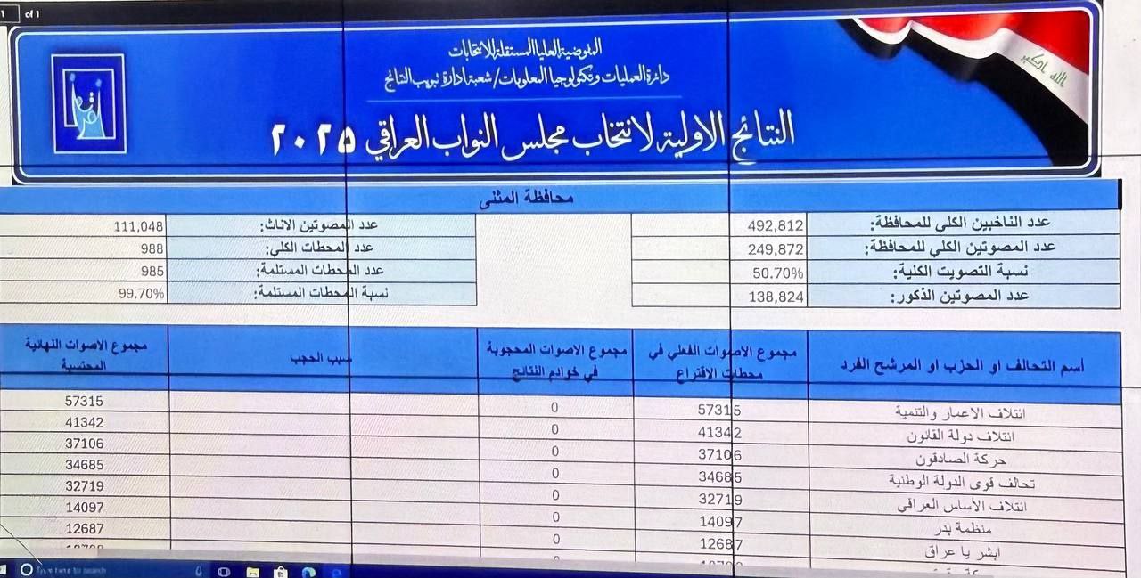 النتائج الأولية للانتخابات النيابية في المثنى