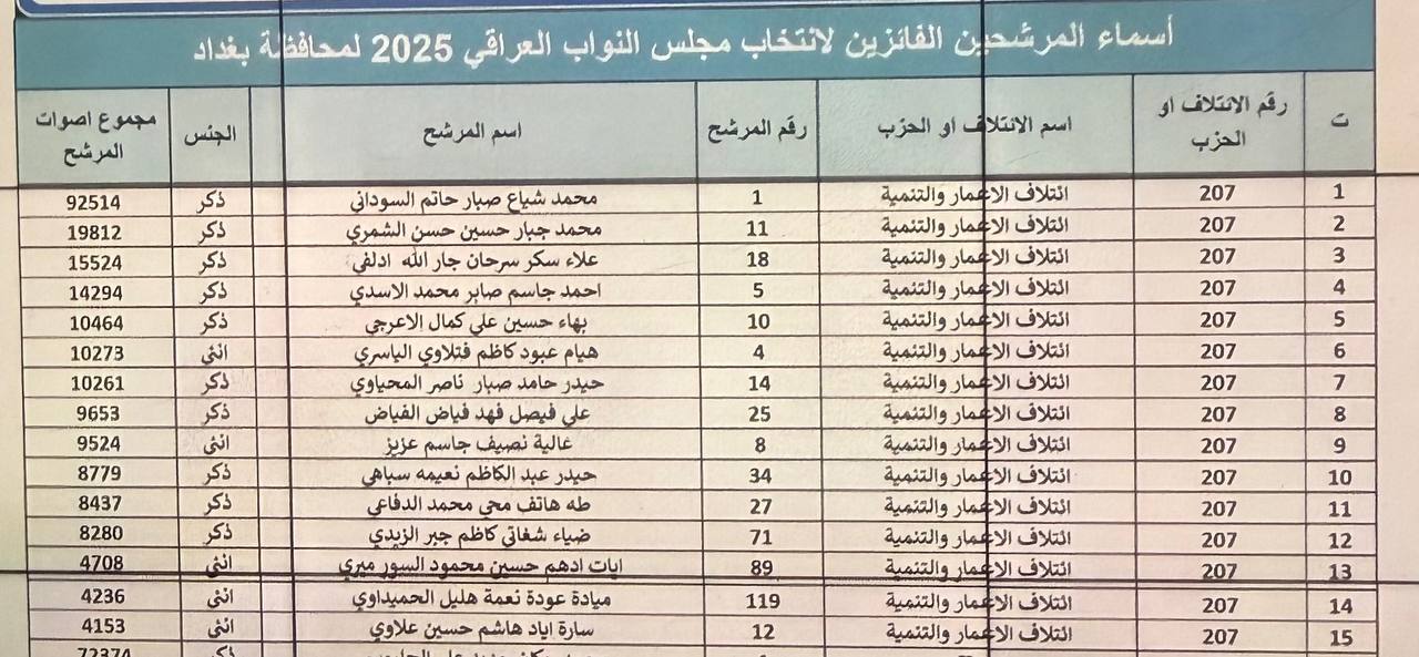 الفائزون من ائتلاف الإعمار والتنمية في بغداد