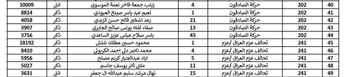 اسماء النواب الفائزين من حركة الصادقون وتحالف العزم عن محافظة بغداد