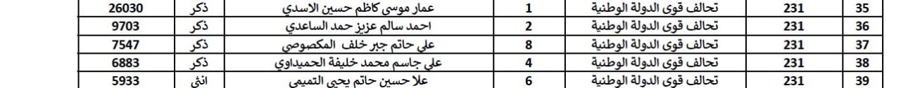 اسماء النواب الفائزين من تحالف قوى الدولة الوطنية عن محافظة بغداد