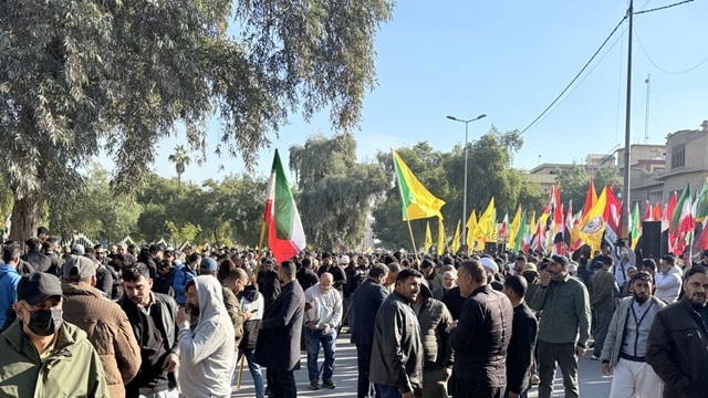 نظم الالاف من جمهور وفصائل المقاومة العراقية، اليوم الجمعة، وقفة تضامنية حاشدة أمام مبنى السفارة الإيرانية في منطقة الصالحية وسط العاصمة بغداد، للتعبير عن دعمهم للجمهورية الإسلامية في ظل التطورات الراهنة.