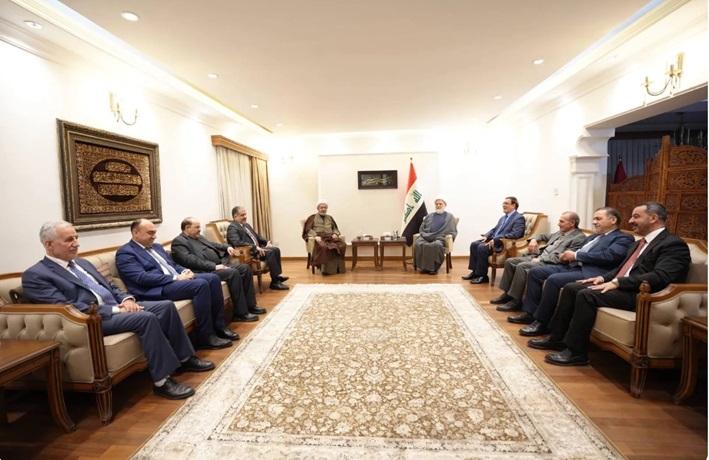 وقال المكتب الإعلامي للشيخ حمودي، في بيان إن "رئيس المجلس الأعلى الإسلامي الشيخ همام حمودي استقبل وفد قيادة حزب الدعوة الإسلامي، وبحثا المستجدات المحلية والتطورات الإقليمية، والحراك الوطني على مسار إكمال تشكيل بقية الرئاسات، وأهمية حالة الانسجام داخل الإطار، ودوره في صناعة التوافق الوطني".