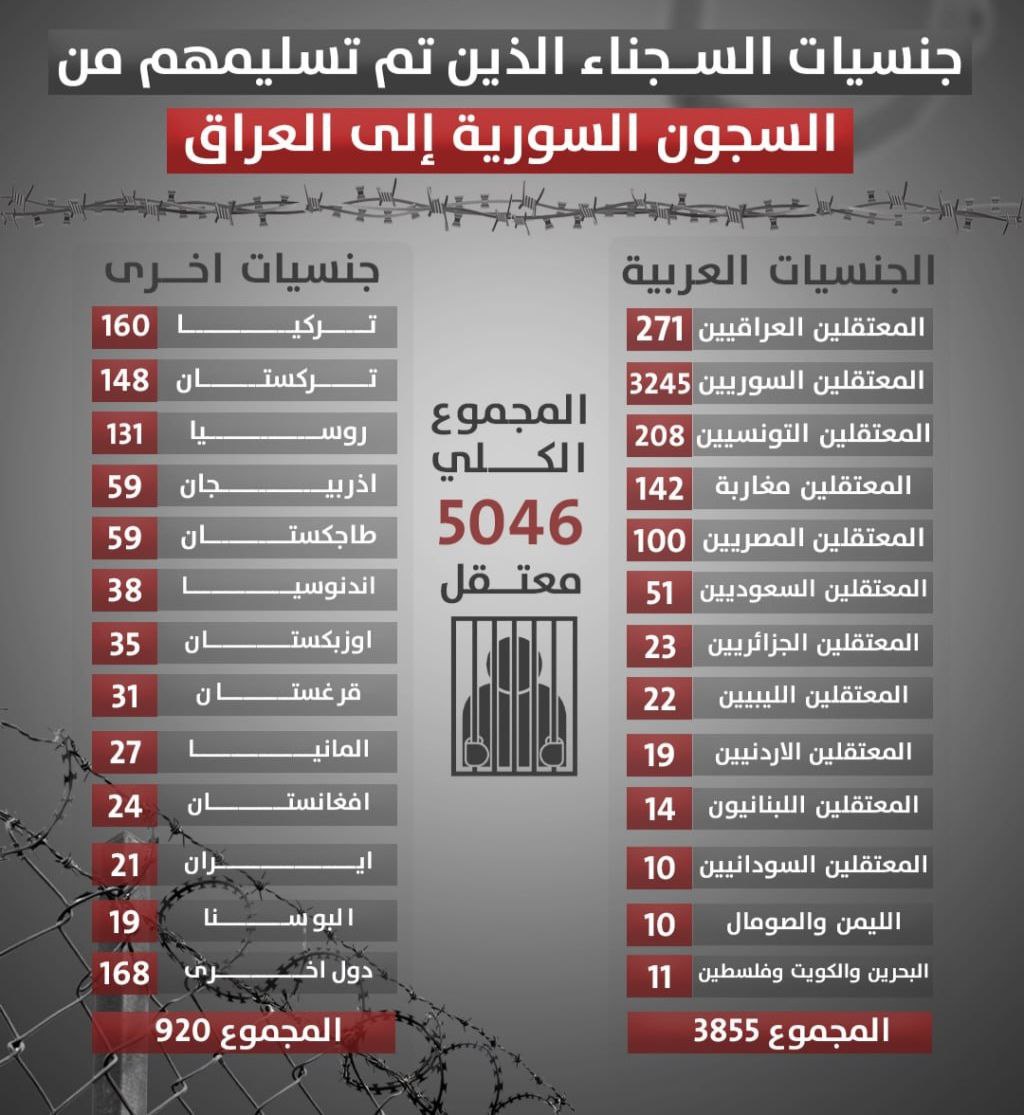 تعرف على جنسيات داعش الإرهابي الذين تم تسليمهم من السجون السورية إلى العراق