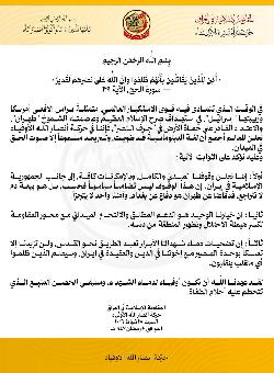 أنصار الله الأوفياء: نعلن وقوفنا المبدئي والكامل، وبالإمكانات كافة، إلى جانب الجمهورية الإسلامية في إيران .