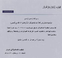 سماحة المرجع الأعلى السيد السيستاني (دام ظله) يعزي باستشهاد سماحة السيد الخامنئي (رضوان الله عليه)