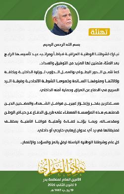 رئيس المجلس الاعلى الاسلامي العراقي يهنيء الشرطة العراقية بذكرى تأسيسها