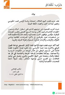حزب تقدم: لا نؤيد ولا نشارك بحكومة تقاد من شخصيات تعيد العراقيين لذاكرة الصراعات الطائفية-