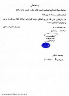 السيد مقتدى الصدر : [لا] لتولي المالكي ولاية ثالثة لرئاسة الوزراء
