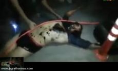 مواطنون غاضبون يحرقون جثة ارهابي انتحاري بعد مقتله من قبل الشرطة يوم امس قرب حسينية التميمي في الكسرة ببغداد ( فيديو )