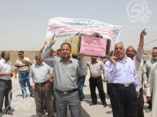 موظفو التجارة في كربلاء يحملون نعش وزارتهم في اعتصام مفتوح ويوجهون خطابا للمالكي