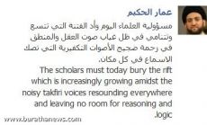 السيد عمار الحكيم :مسؤولية العلماء اليوم وأد الفتنة في ظل زحمة ضجيج الأصوات التكفيرية