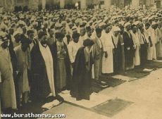 صورة اليوم من ثلاثينيات القرن الماضي: زعيم الطائفة اية الله العظمى السيد ابو الحسن الأصفهاني وهو يؤم صلاة الجماعة في الصحن الحيدري الشريف