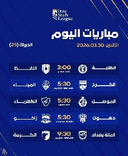 دوري نجوم العراق: مواجهتان هذا اليوم تختمان الجولة الـ24