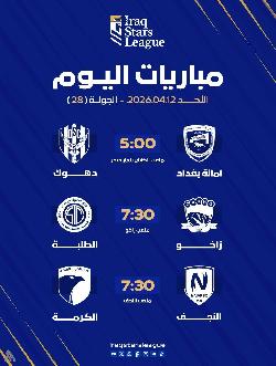 دوري نجوم العراق: ثلاث مواجهات مرتقبة في انطلاق الجولة الـ 28 هذا اليوم
