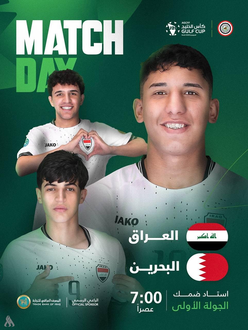 يبدأ منتخبنا الشبابي لكرة القدم مشواره في بطولة كأس الخليج العربي تحت (20) عاماً، اليوم الجمعة عندما يواجه نظيره البحريني لحساب الجولة الأولى من المجموعة الثانية، إذ سيكون ملعب (ضمك) مسرحاً لها عند الساعة السابعة مساء، في حين تسبقها مباراة مصر وعمان التي ستنطلق أحداثها في ملعب مدينة الأمير سلطان الرياضية في الساعة الرابعة والنصف عصراً.