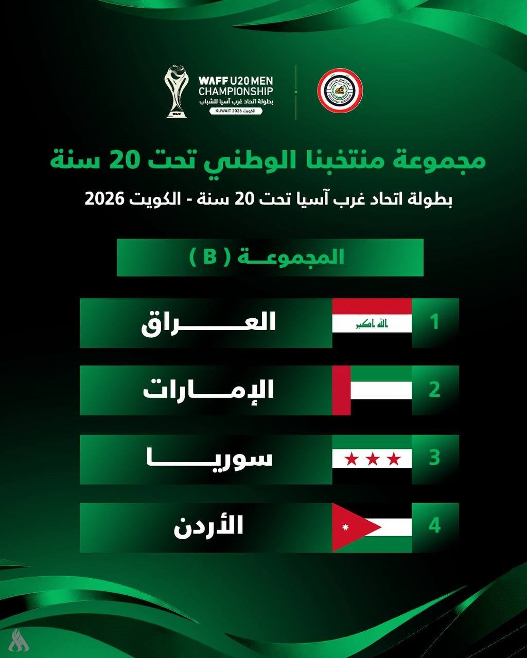 وضعت قرعة بطولة اتحاد غرب آسيا لكرة القدم تحت 20 عاماً، منتخبنا الوطني في المجموعة الثانية إلى جانب منتخبات الإمارات وسوريا والأردن، حيث ذكر الاتحاد العراقي لكرة القدم في بيان له، أن" قرعة البطولة أوقعت منتخب العراق إلى جانب الإمارات وسوريا والأردن، ضمن منافسات بطولة اتحاد غرب آسيا تحت 20 عاماً – الكويت 2026". وتستضيف دولة الكويت منافسات البطولة، المقرّر إقامتها خلال شهر آذار 2026، بمشاركة نخبة من منتخبات غرب آسيا، في إطار الاستعدادات والاستحقاقات القارية المقبلة.
